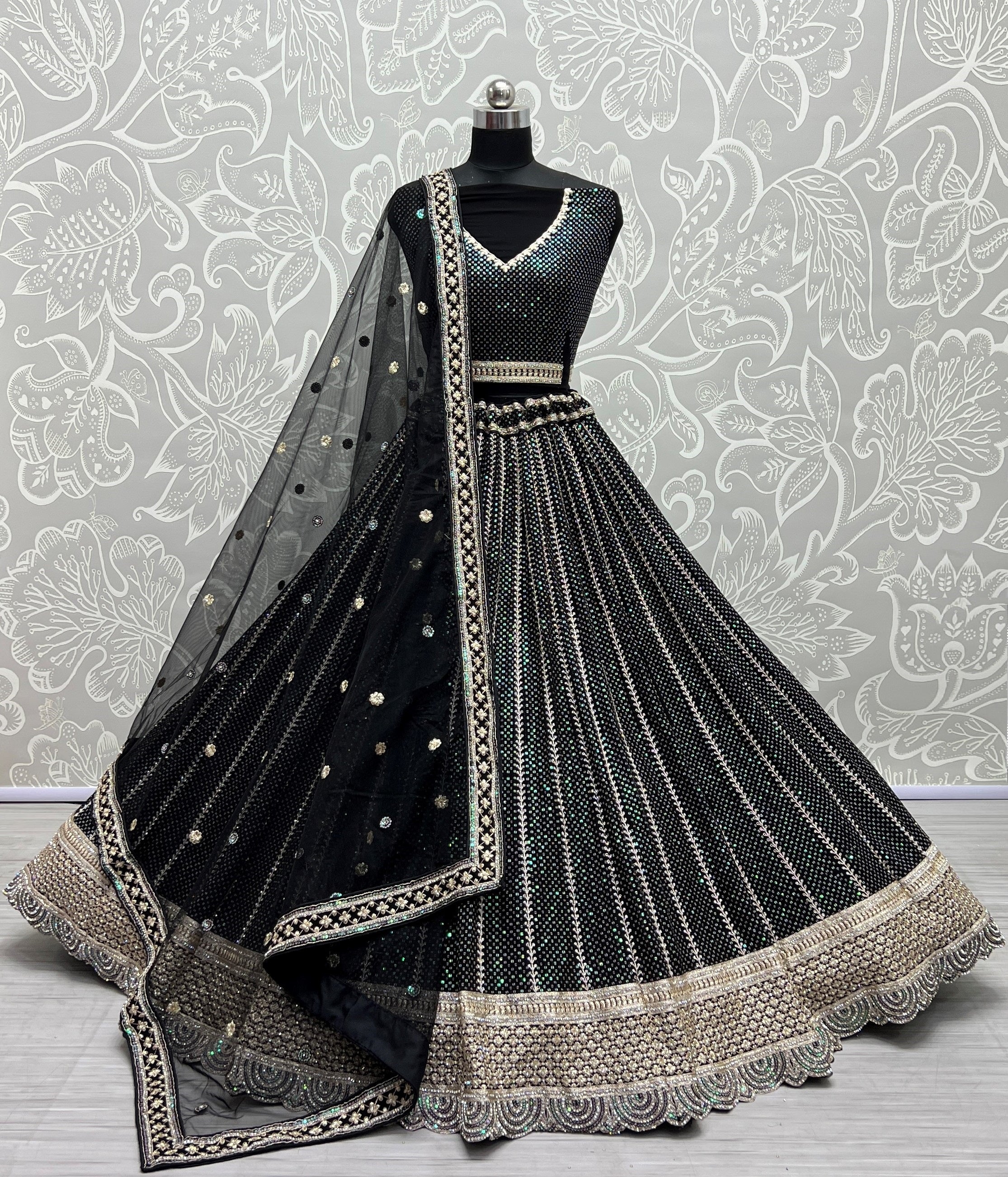 Zircon diamond and sequins embroidery work designer black Lehengacholi